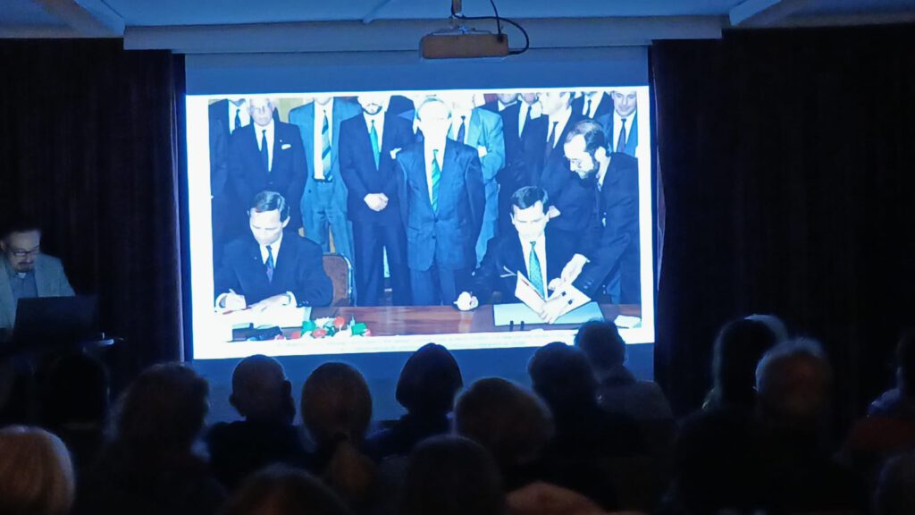 Am 3. Oktober feierte das Filmtheater Edenkoben den 35. Jahrestag der Deutschen Einheit mit einer gut besuchten Sonderveranstaltung. Oberstudienrat Thomas Hoffmann (Friedrich-Magnus-Schwerd-Gymnasium Speyer, Generaldirektion Kulturelles Erbe Rheinland-Pfalz) sprach unter der Leitfrage „Einigkeit und Recht und Freiheit?“ über die historischen Entwicklungen von 1945 bis zur Wiedervereinigung 1989 und deren Bedeutung für die Gegenwart.